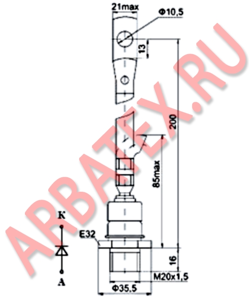 Предназначен для работы в цепях статических преобразователей электроэнергии постоянного и переменного токов на частотах до 2 кГц.