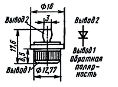 У диодов прямой полярности анодом является корпус (маркируется красной риской), обратной полярности — жесткий или гибкий вывод (маркируется черной риской).