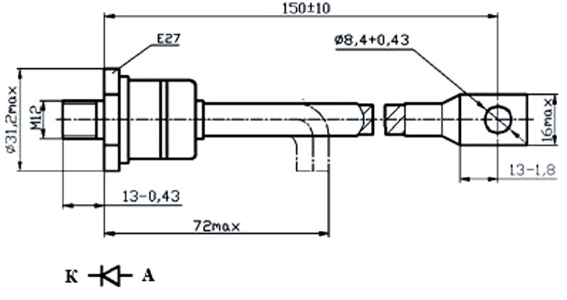 Предназначен для работы в цепях статических преобразователей электроэнергии постоянного и переменного токов на частотах до 16 кГц