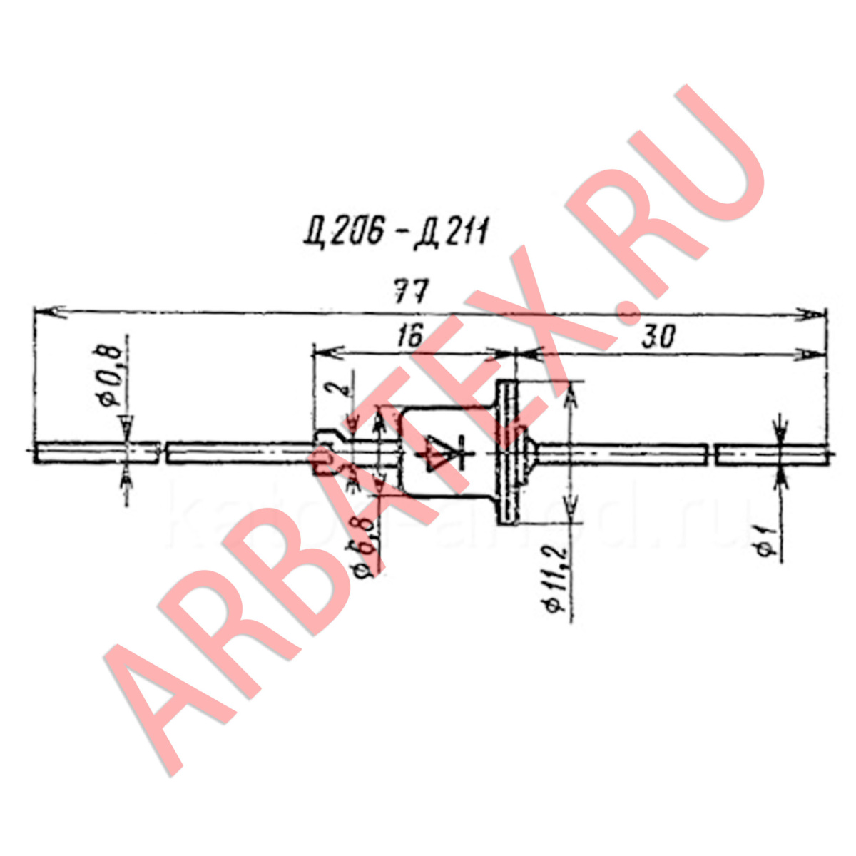 Распиновка диодов Д206, Д207, Д208, Д209, Д210, Д211 нанесена на корпусе, как и их тип.