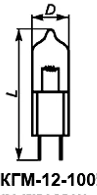 КГМ-12-100 лампа накаливания кварцевая галогенная малогабаритная предназначена для использования в качестве высокоинтенсивных источников света в оптических приборах, относится к разделу электровакуумных приборов и ламп различного назначения. По конструкции состоит из вакуумно-герметичной, жесткой оболочки, внутри которой отсутствует кислород.