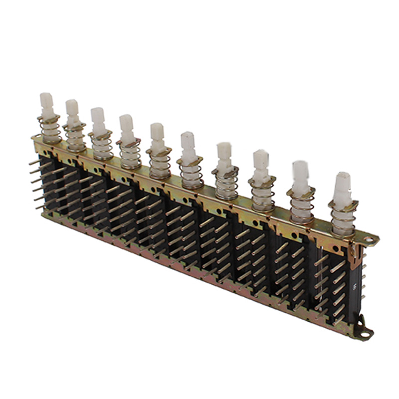 10 – число, соответствующее шагу между осями модулей в мм или размер прямоугольной кнопки для переключателей с одним модулем. В случае применения круглой кнопки указываются буквы Кр, взятые в круглые скобки. Для одномодульного переключателя без кнопки число после третьего дефиса не указывается; 10,15,20.