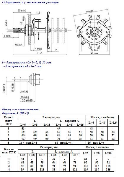 Описание переключателя галетного ПГК-3П3Н: