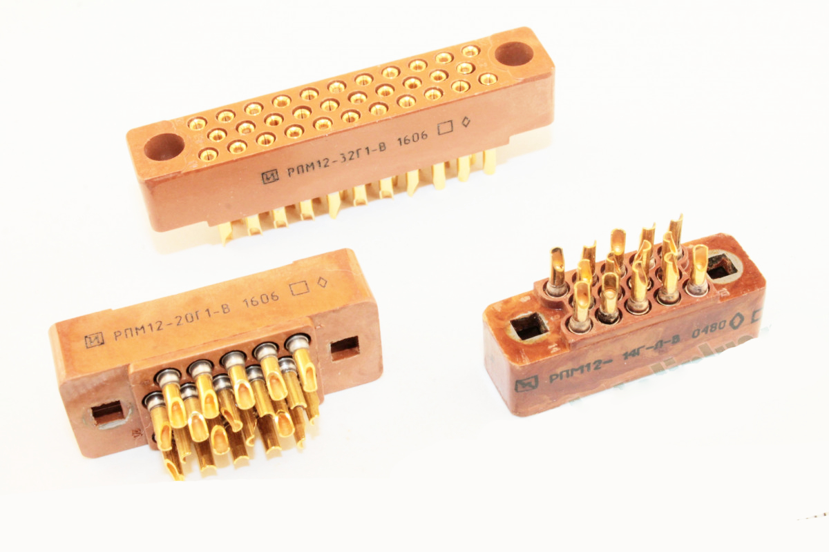 Соединители РПМ12-14Г1-В низкочастотные прямоугольные предназначены для объемного монтажа резьбового сочленения, для работы в электрических цепях постоянного, переменного (частотой до 3МГц) и импульсного токов при напряжении до 500 В (амплитудное значение) и токовых нагрузках до 2,7 … 3,4 А в зависимости от контактности.