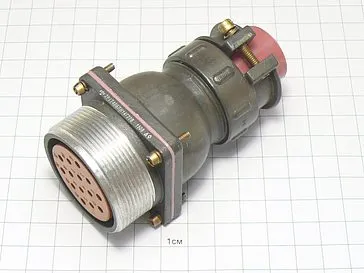 Цилиндрический низкочастотный соединитель 2РТТ40БПН14Г22В пылебрызгозащищенный, предназначен для работы в электрических цепях постоянного и переменного  токов частотой до 3 МГц при напряжении до 850 В (амплитудное значение).