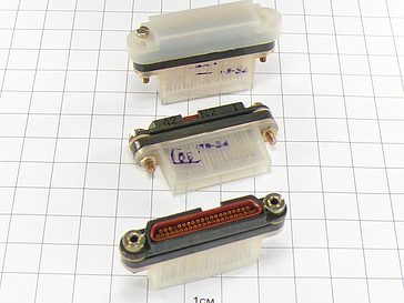 Соединители (вилки, розетки) прямоугольные объемного монтажа с винтовой фиксацией сочлененного положения. Соединители состоят из кабельной вилки и приборной розетки и имеют шпоночную поляризацию корпусов.  Соединители имеют токопроводное покрытие корпусных деталей (корпуса, кожуха).  Покрытие контактов – золото (серебро). Кожух монтажный поставляется по дополнительному заказу. Соединители для внутреннего монтажа всеклиматического исполнения. Соединители взаимосочленяемы с ОНП-ЖИ-8 по НЩ0.364.021 ТУ.