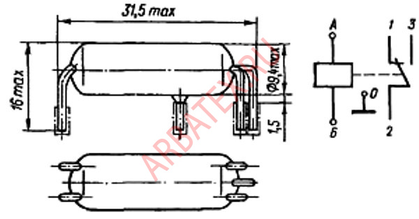 Реле имеет один переключающий герметичный магнитоуправляемый контакт КЭМ3.
