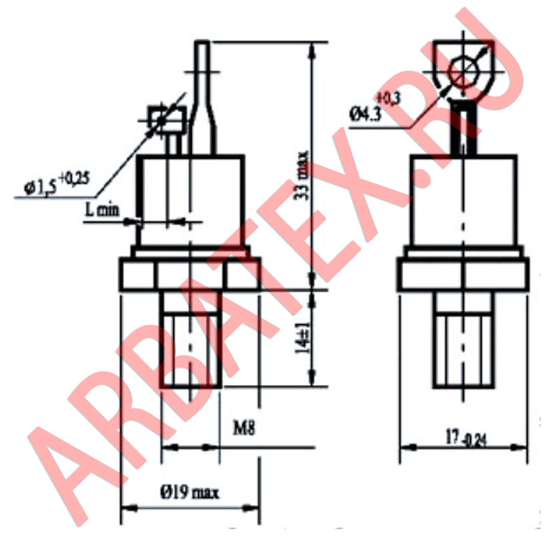 Масса тиристора не более 6 г.
