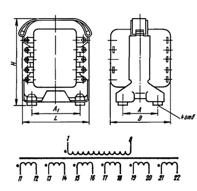 Трансформаторы анодные типа ТА изготавливают на стержневых и броневых магнитопроводах унифицированной конструкции, мощностью от 12 до 510 В*А с выходным напряжением 28...1260 В на токи нагрузки 25...1000 мА.